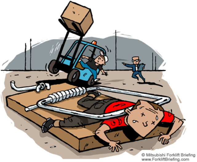 La paradoja es que el cinturón en las carretillas no tiene la función de proteger al conductor en una colisión de velocidad, sino de coartar su instinto inmediato de saltar fuera.... hacia la muerte.